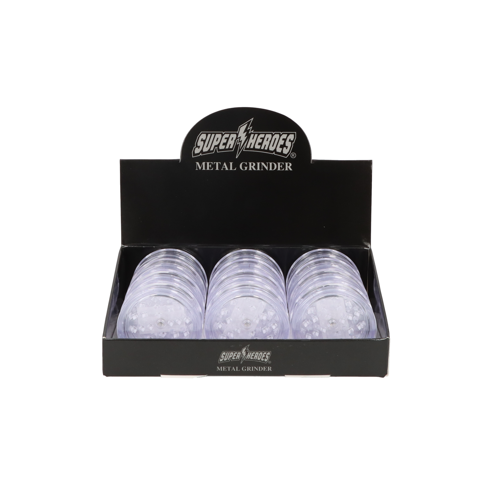 Super Heroes Grinder 3tlg. Plastik transparent, Ø 6cm, H. 2,5cm