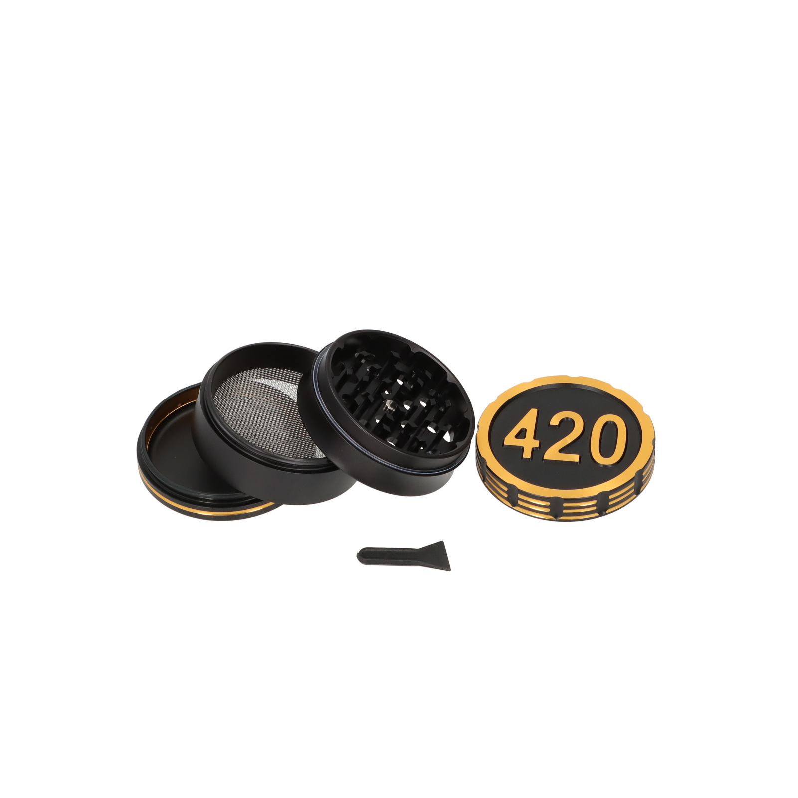 Grinder 4tlg. "420" Metall schwarz/goldfarben, Ø 5,8cm, H. 4,5cm
