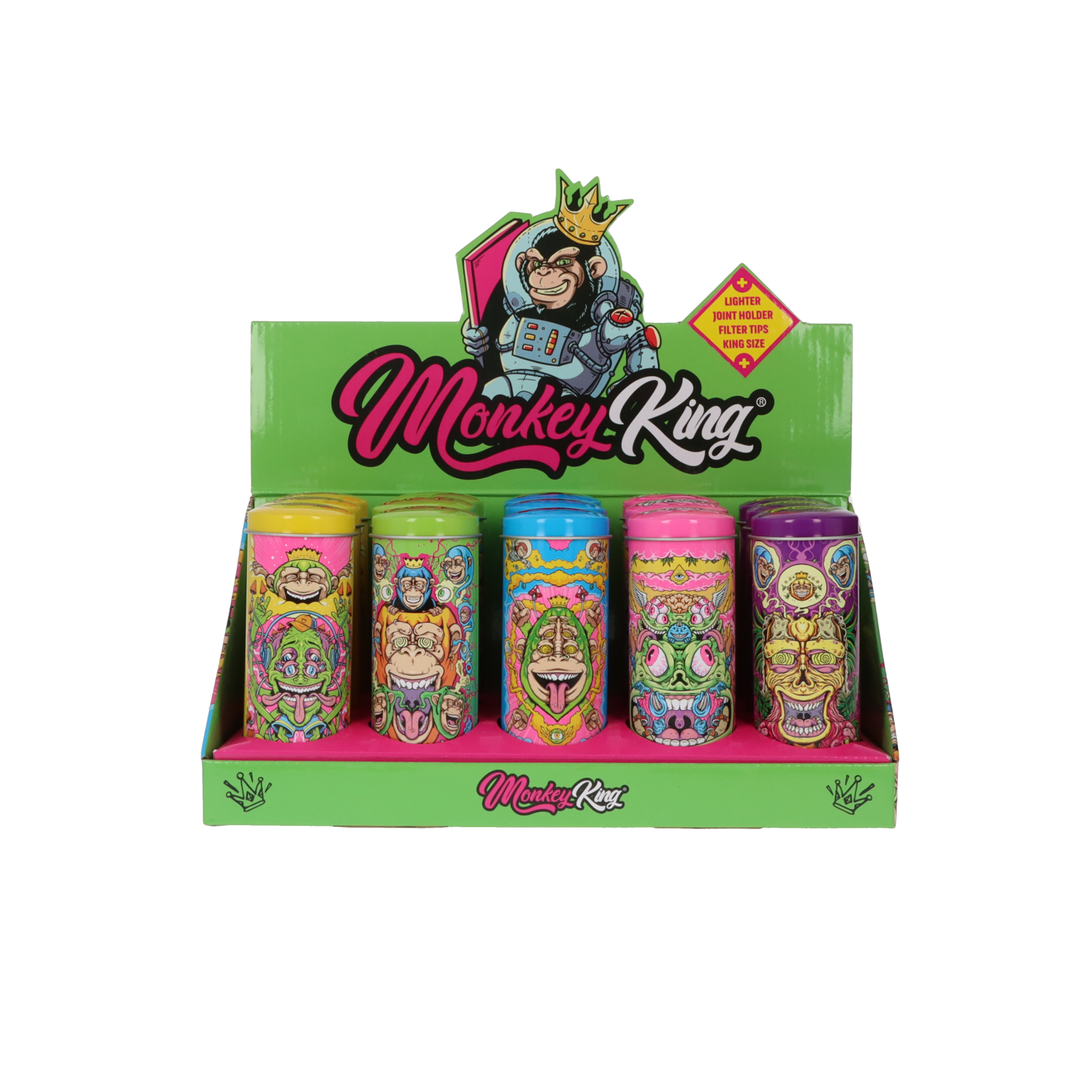 Monkey King Metallbox rund inkl. Clipper FZ, Cone Tube, Filter Tips, Paper