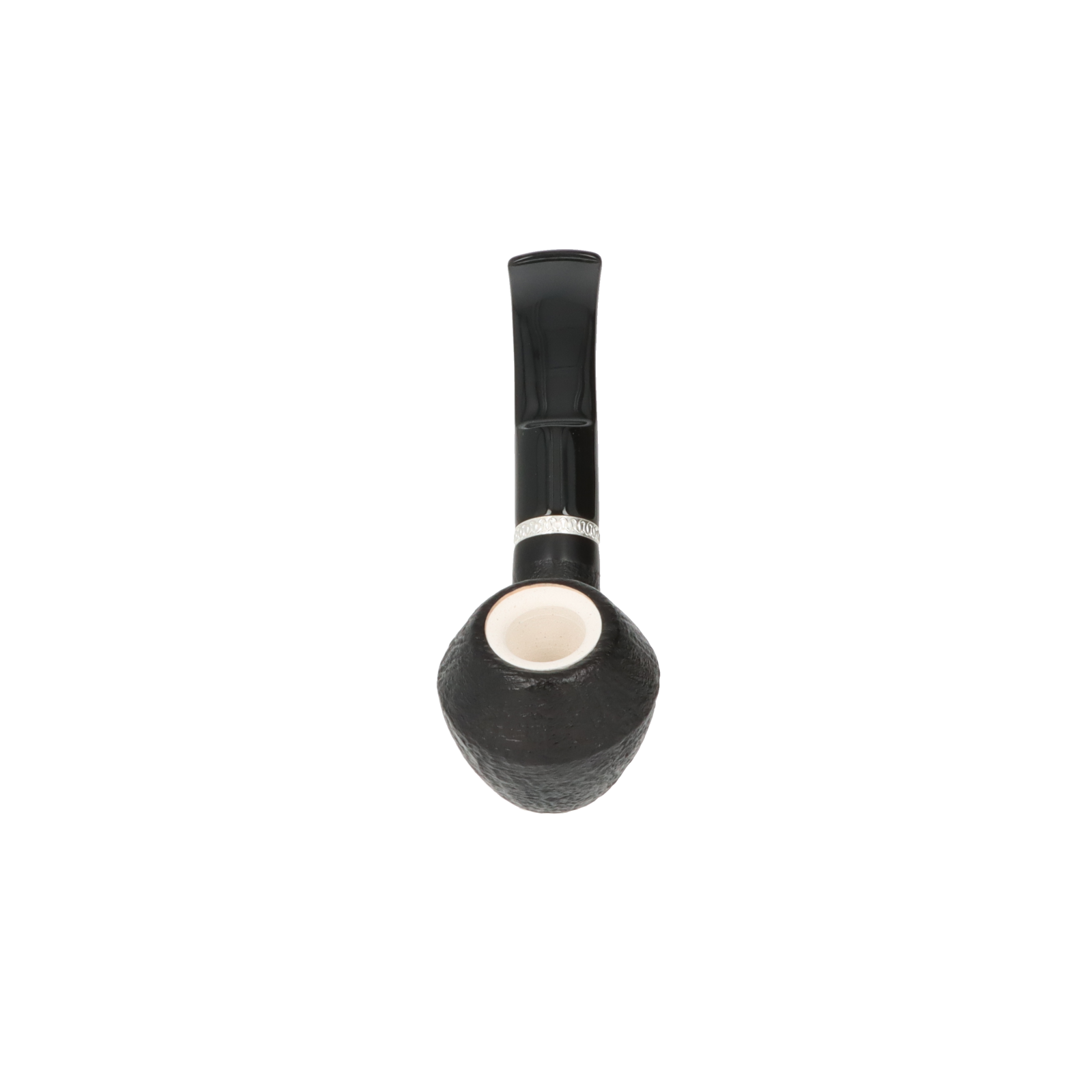 Angelo Pipe Meerschaum insert, black rusticated, Metall Ring, curved