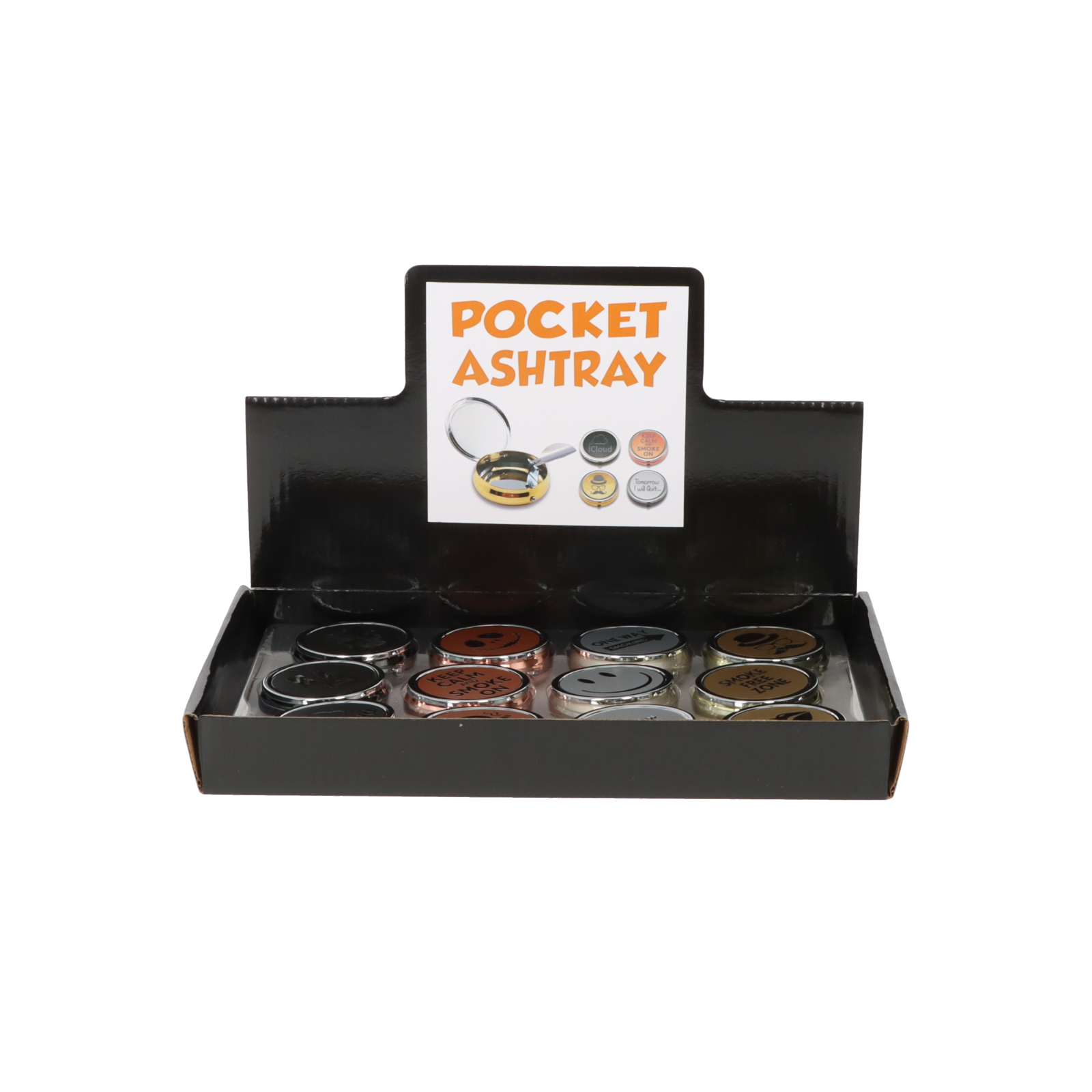 Angelo pocket ashtray, metal sayings, Ø 4.5cm