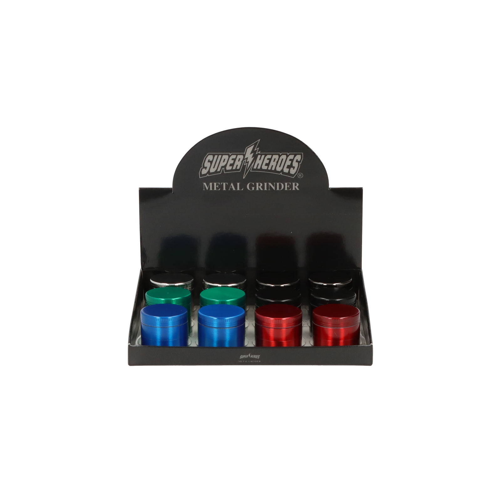 Super Heroes grinder, 4 pieces, metal, Ø 30mm, H. 29mm, assorted colors