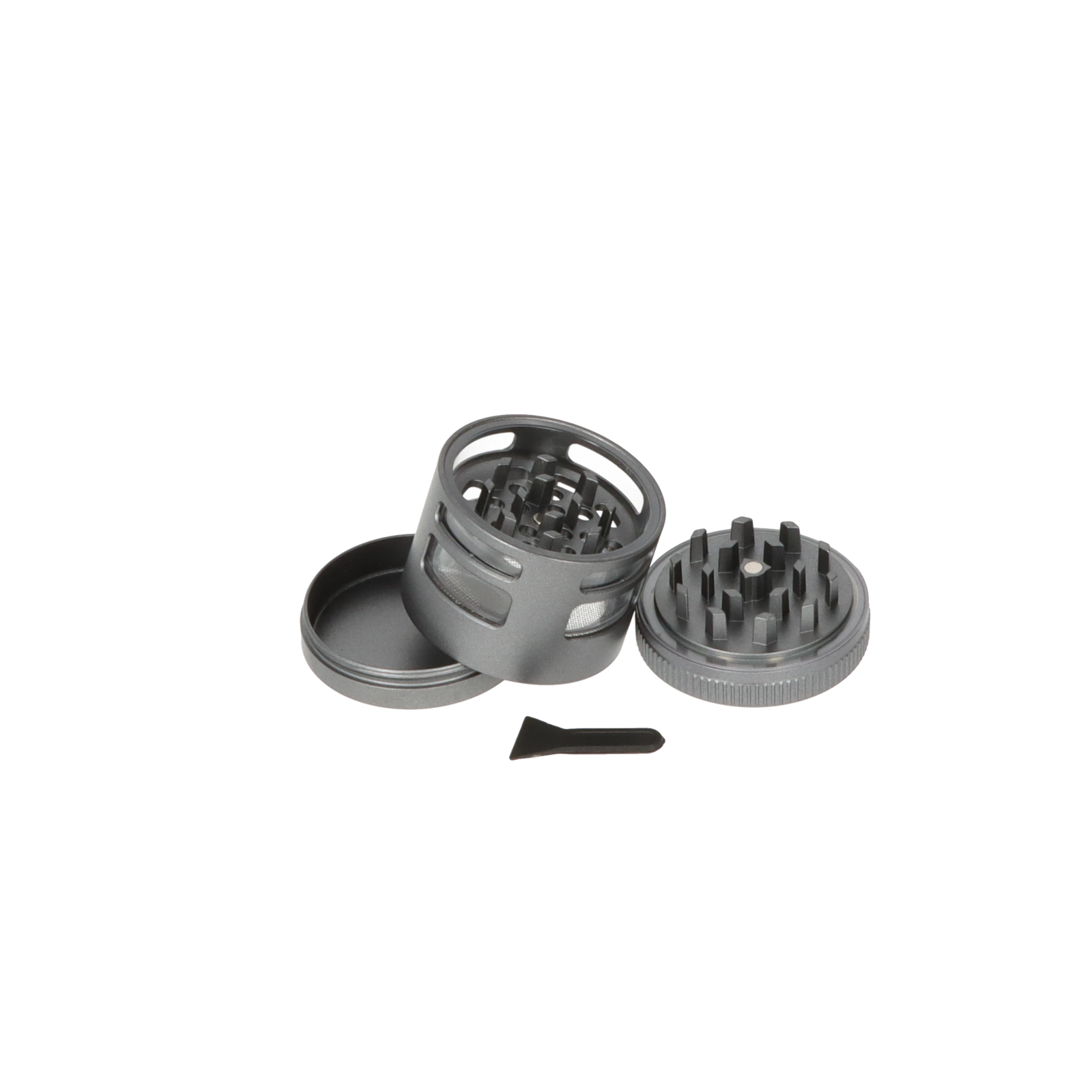 Grinder 4 parts, metal grey, Ø4,5 cm, H.5 cm with window